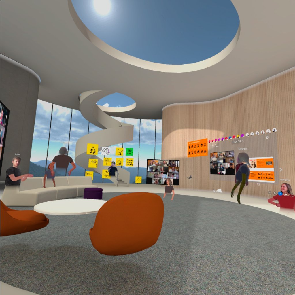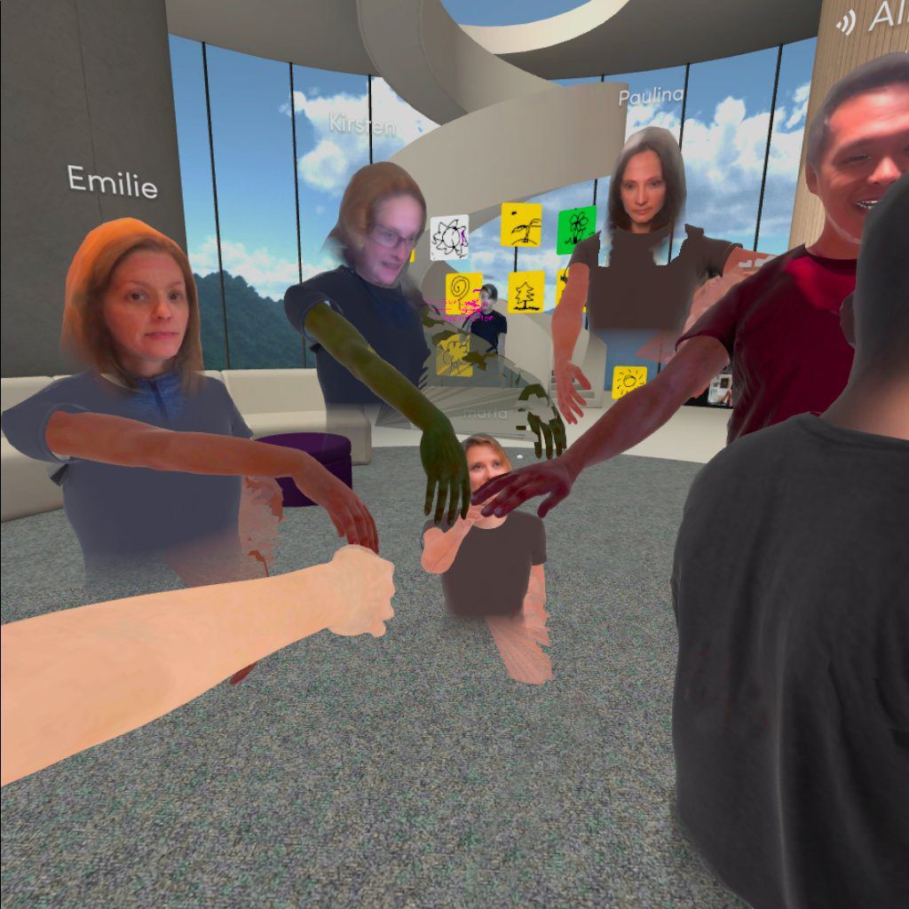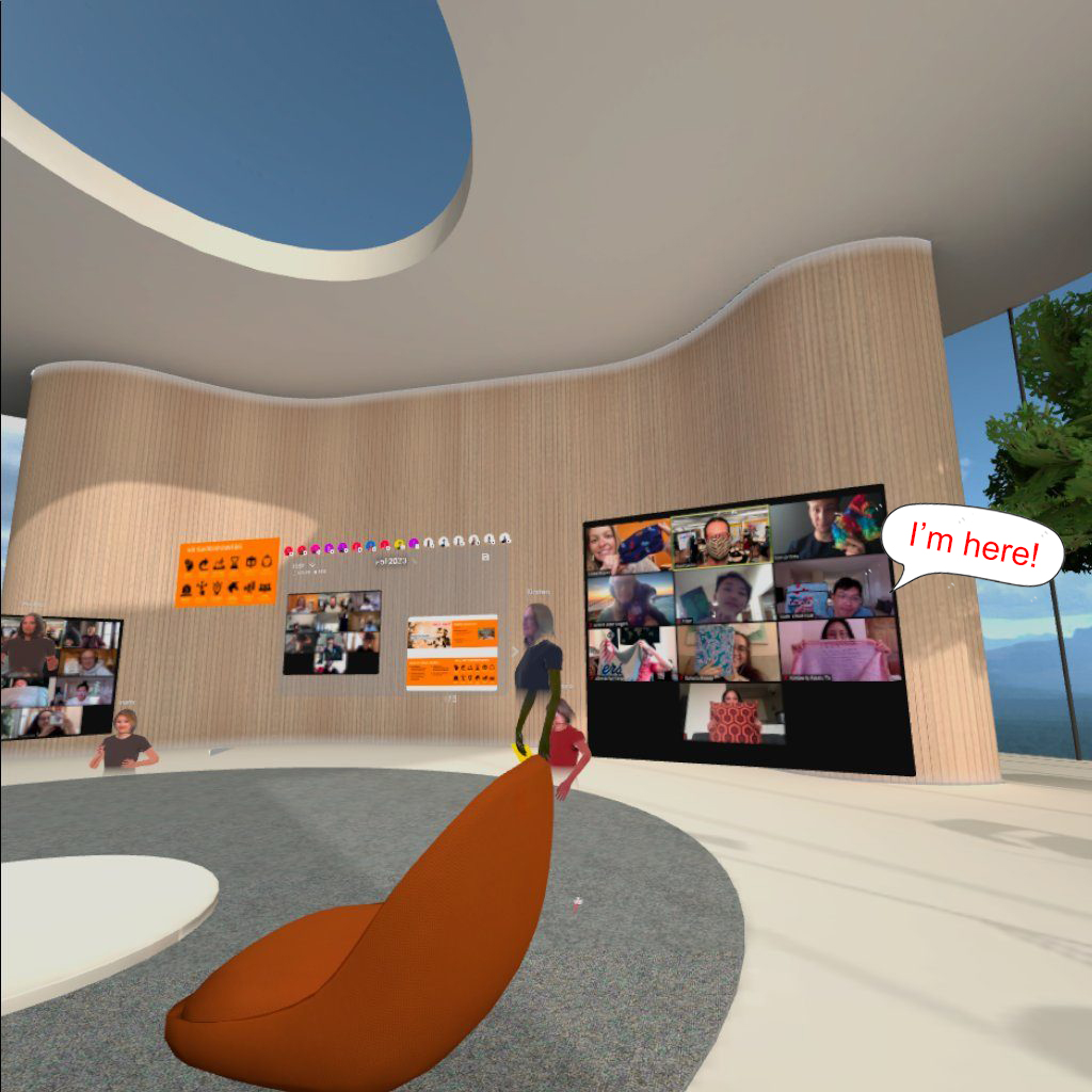 既然是設計VR的內容,當然要進到VR裡面!對於因為遠距工作而“Zoom fatigue”的我們來說,從 2D螢幕回到 3D跟同儕互動、開會以及腦力激盪,真的很棒!