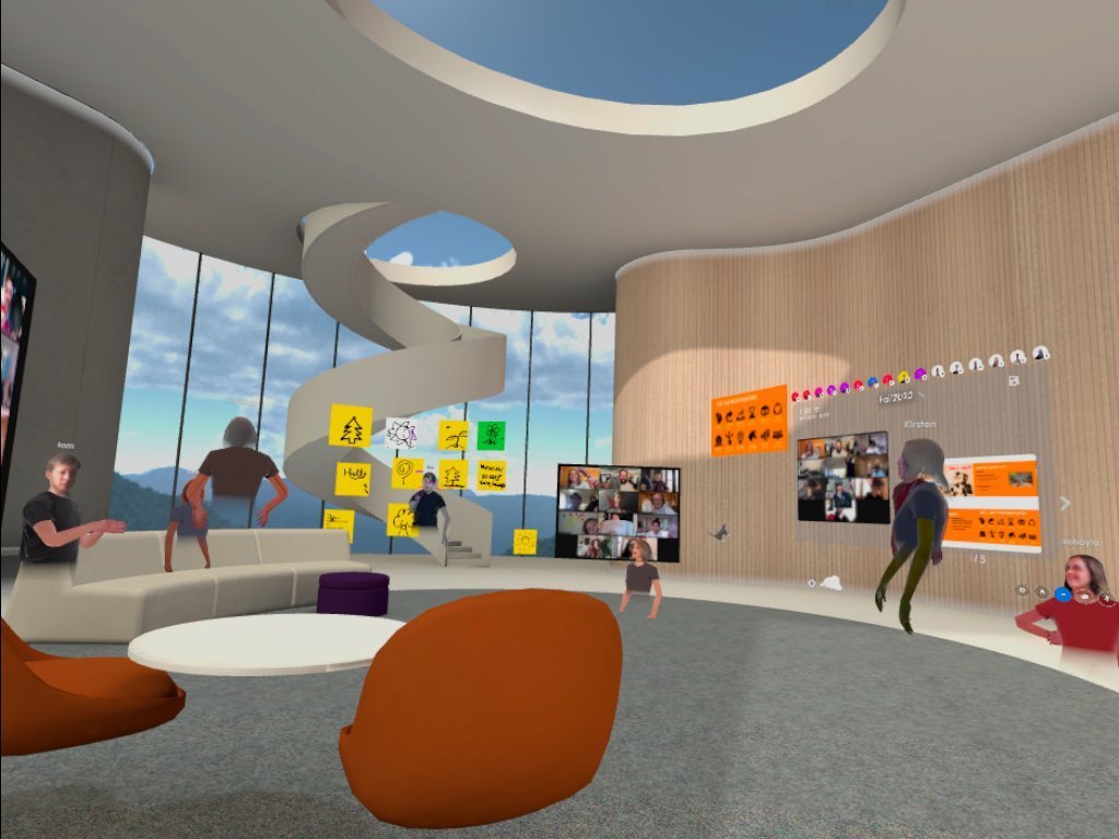 既然是設計VR的內容,當然要進到VR裡面!對於因為遠距工作而“Zoom fatigue”的我們來說,從 2D螢幕回到 3D跟同儕互動、開會以及腦力激盪,真的很棒!