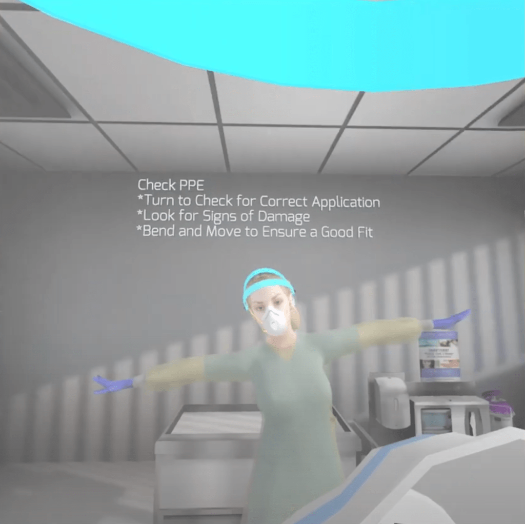 而最近新冠疫情也提升了醫護正確防護以達感染控制的需求,許多VR新創也提供這方面的教學訓練。像是圖四與五便是Shift公司的一套模擬,一步一步提供從洗手