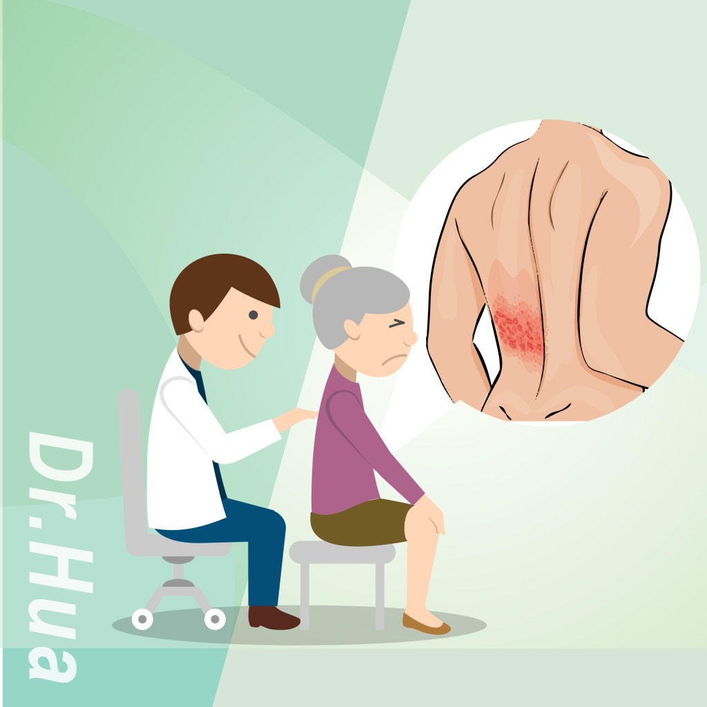 常在免疫力下降時 (例如壓力、過度勞累、生病),病毒活化並沿著神經皮節,產生單側疼痛刺癢的紅疹或水泡。
